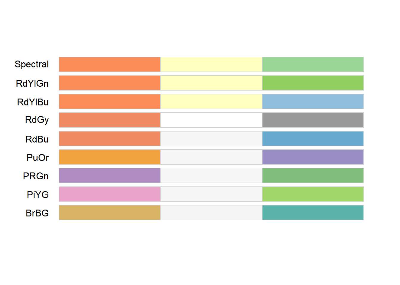 ggplot(iris, aes(x = Species, y = Sepal.Length, fill = Species)) +geom_bar(stat ="identity") +labs(title ="Sepal Length by Species", x ="Species", y ="Sepal Length") +theme_minimal()+scale_fill_brewer(palette ="Spectral")