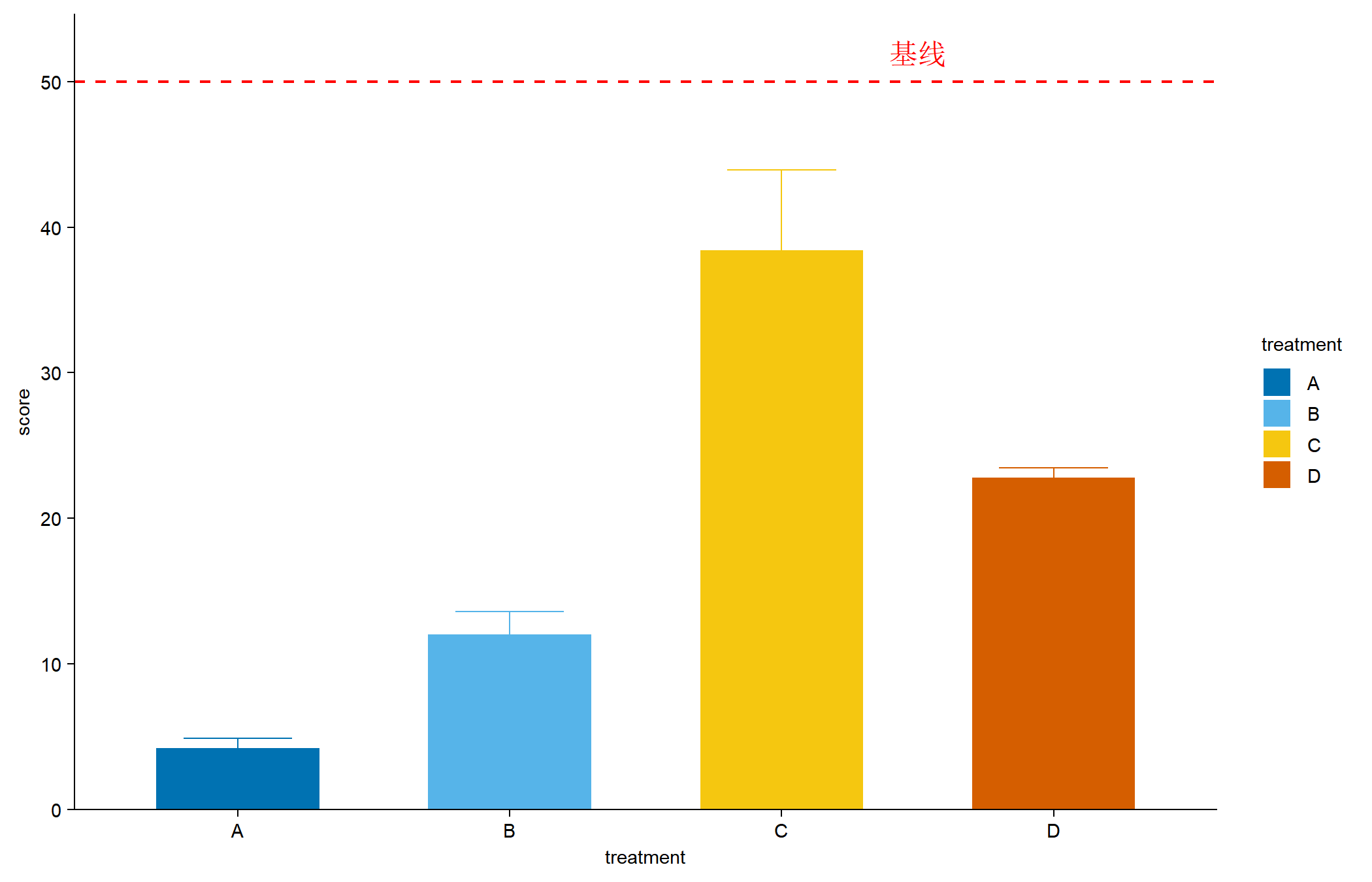 my_barplot(treatment, score, treatment)