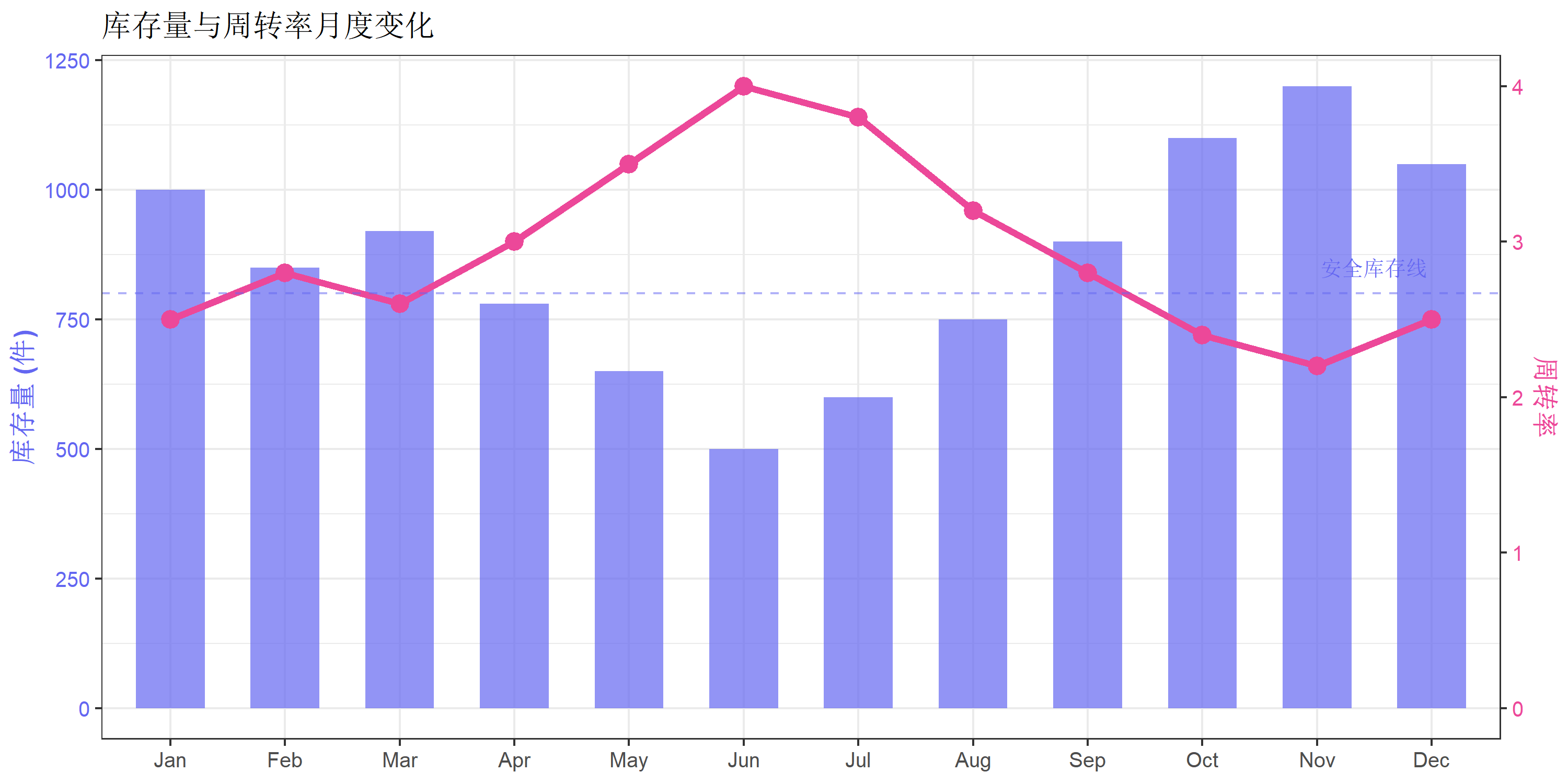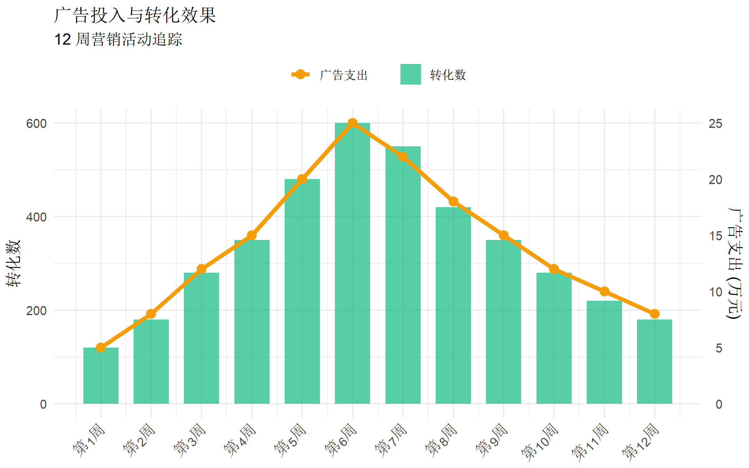 - 右 Y 轴(次轴):展示次要变量,量纲可能不同